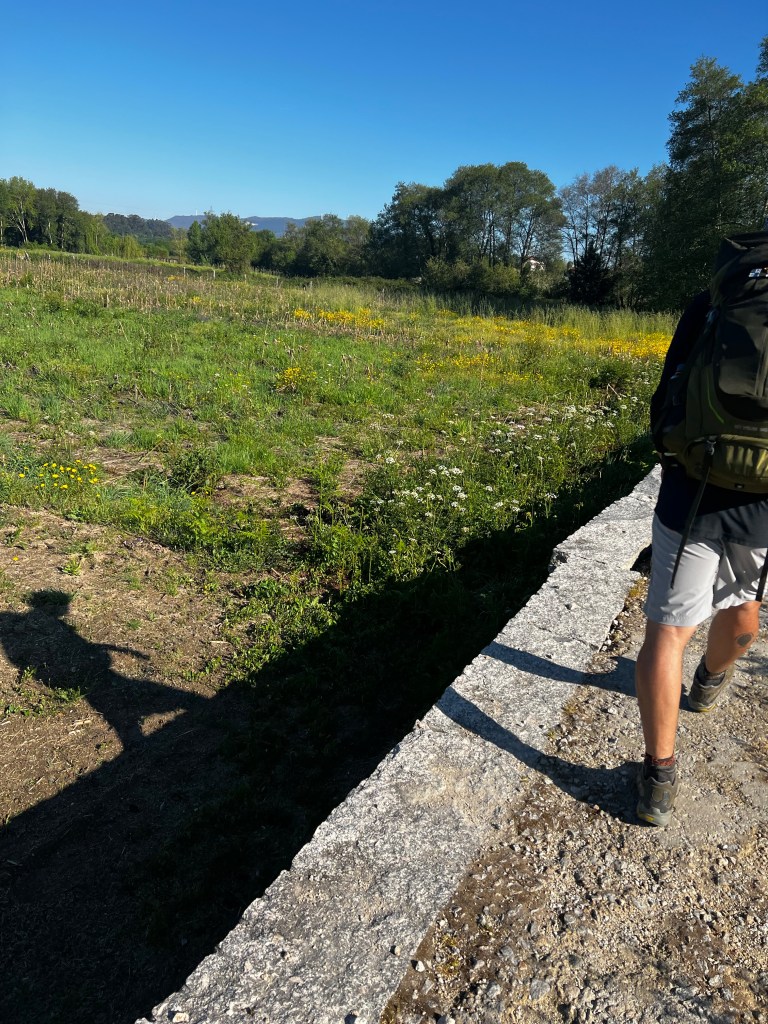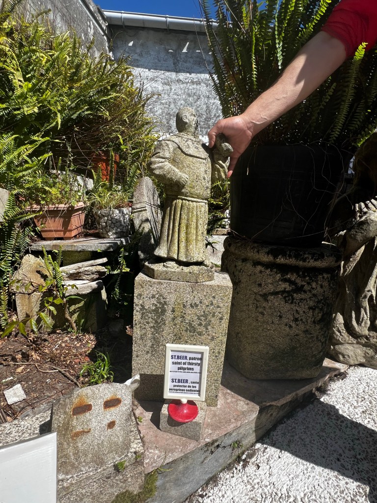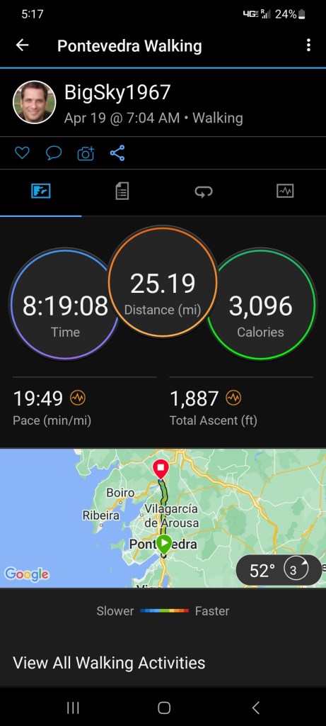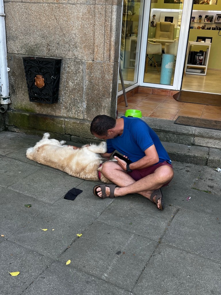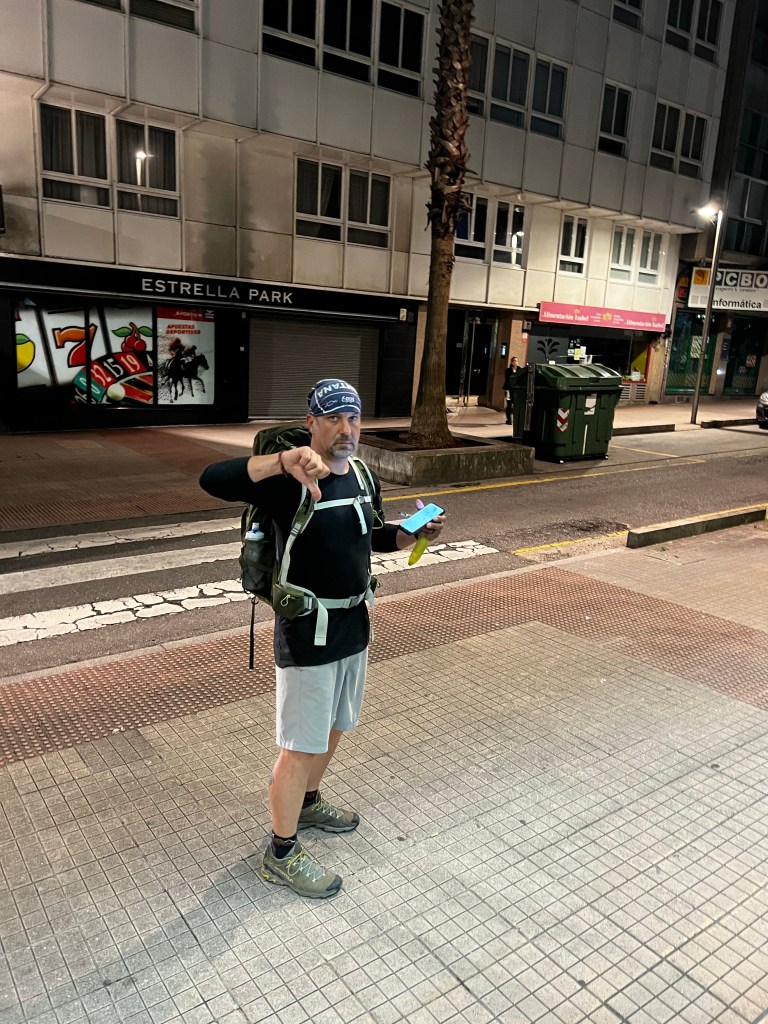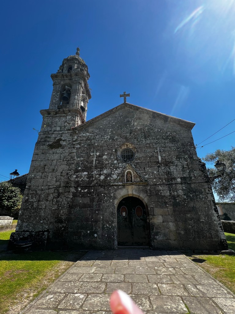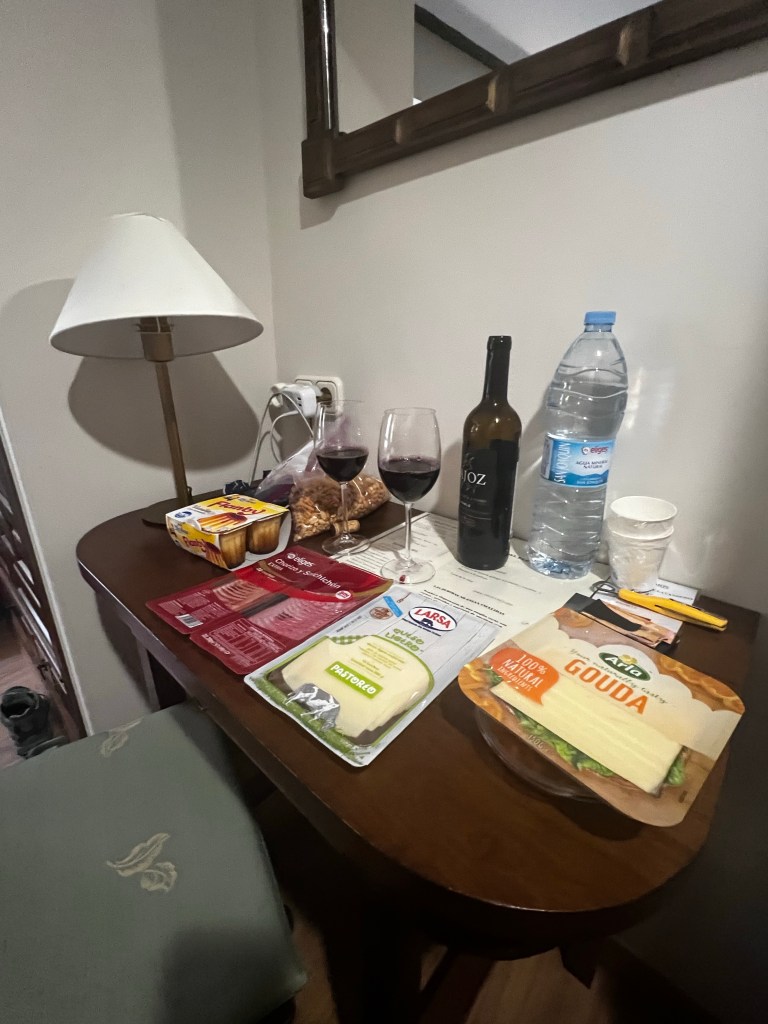 Ok ….. so how to explain today! First off, we decided last night to double up our stages and finish the camino in 9 days vs. 10. That meant we had to do a 40km day today. We were definitely a bit anxious about the day. Niki has 3 blisters she was worried about, and I have been nursing my left knee and a right little pinky toe that may just fall off at any time. With that said, we tried to stay positive and trek. We started in the dark, and surprisingly, we did super well. We went 6 miles before our first short stop for a coffee. After that, we made it to the original planned stopping point by noon. A toast and coffee later .. plus, a lot of stretching we were off. The remaining 12 miles our plan was to just break it into 5 mile treks. We found an old church with nice grass at mile 5 to stretch. After that, we made it to mile 22 … Niki was craving a Coke Zero. With only 3 miles to go we found 1 very sketchy place. A hut with a Spanish man. We got our Coke Zero along with a 30-minute discussion on how Spain is going to take over the world. He even called half of the us “the new Spain”. 😳 It was hilarious.. but at the same time annoying because we were hurting so bad and just wanted to get to the hotel. Finally, we arrived at the combo hotel-restaurant. We layed in bed for hour, showered and tried to find dinner. We decided to just goto market for meat and cheese. As some of you may know I am a little scared of Padron. Last time I was here I had the local octopus dish and ended with food poisoning. So I felt the market food was a safe bet.