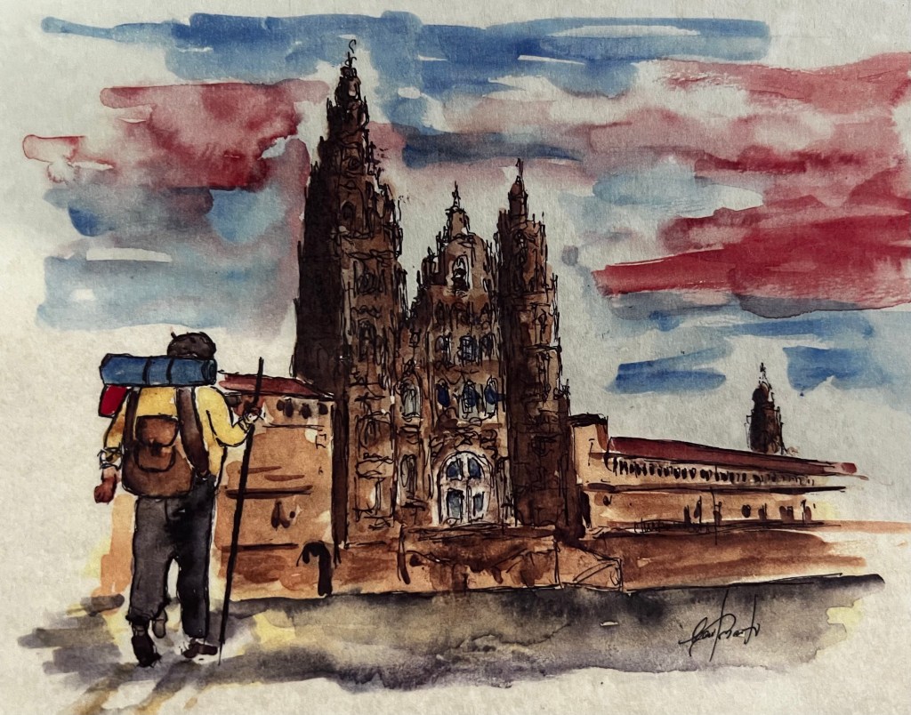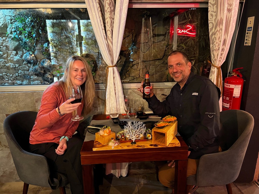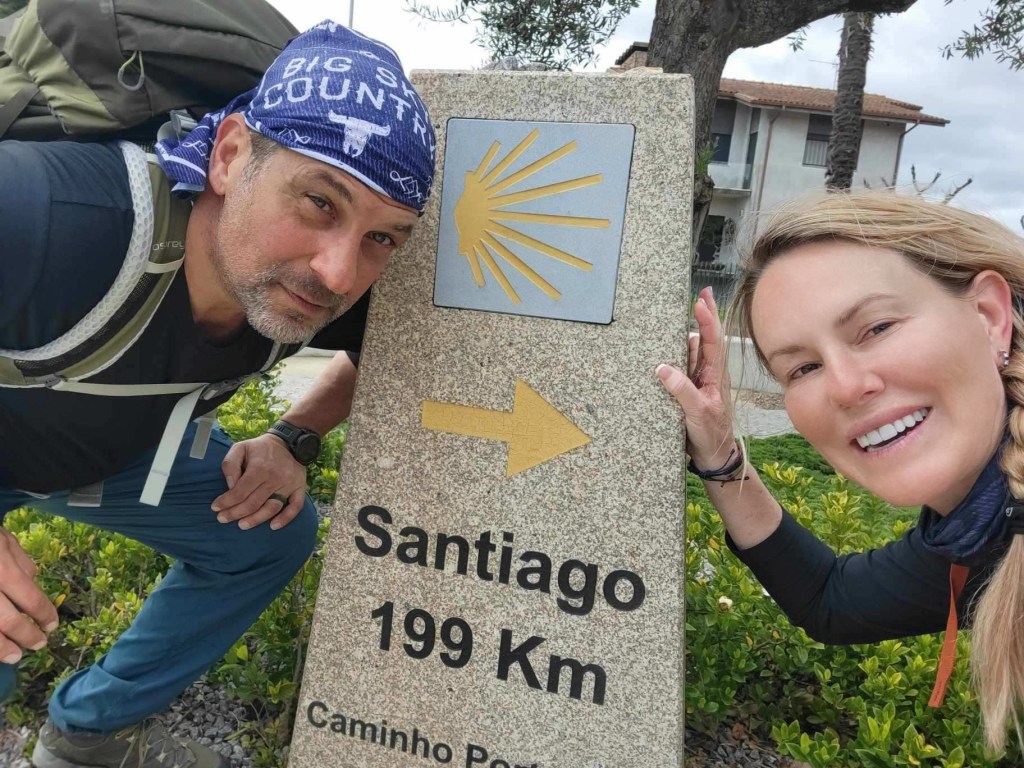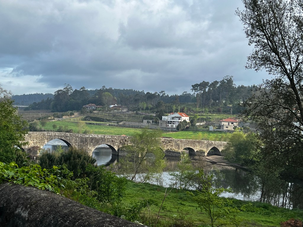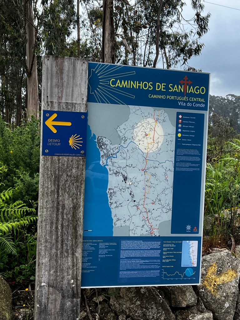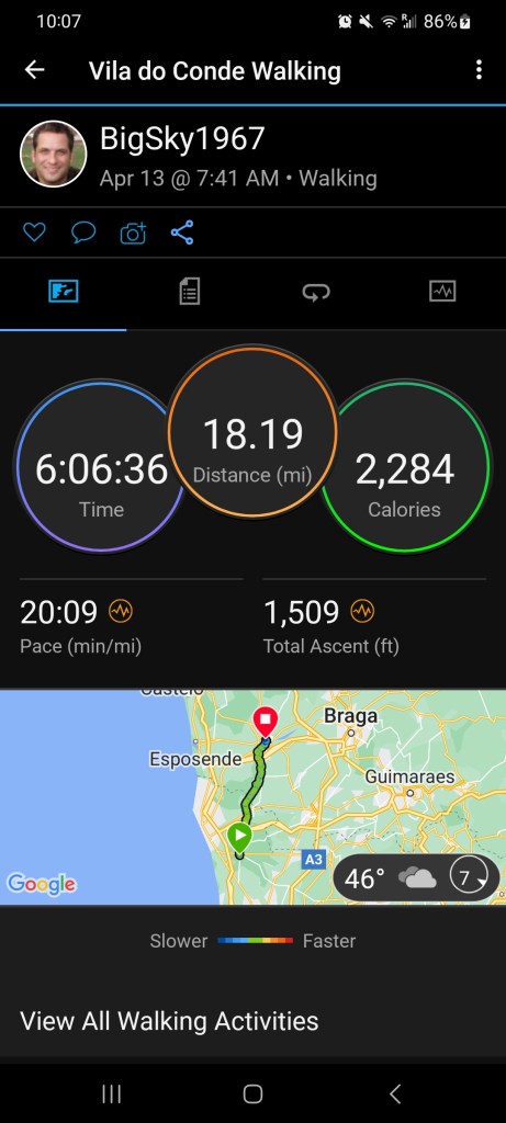 Day two .. a bit longer than day 1 but not too bad. We did feel it by the end of the walk. Weather didn’t know what it wanted to do. Some rain and some sun. Finally met some other pilgrims for a bit. Alex from the UK just finished the Frances route and is doing this one. Crazy. Lunch wasn’t great, but we stopped for coffee and vihno Tinto along the way. We got to Barcelos just before 4 pm. Checked into the Albuquerque and did a little grocery shopping. We also went to the pilgrim’s blessing service at the chapel. We ended the night with one of the best sushi meals ever. Seriously, it was incredible. We are not looking forward to our longest day in all day rain tomorrow. But what are we to do but trek on! Bom cahmino.