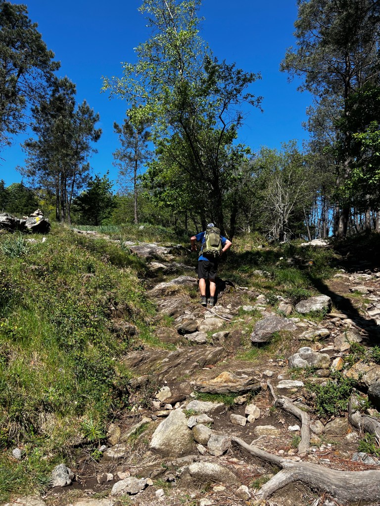 A short day miles wise… but our steepest climb of the trip. We woke up feeling our sangria and bottle of wine from dinner for sure. Weather was finally fantastic. The climb up reminded us of a typical Montana hike, so we were in our element. If it were raining today it would have been a tough and slippery climb. It was nice arriving at the alberque early .. got clothes washed and dried so we are good for a few days now. Had dinner with some of our new camino friends. Pearl, Valter, and flora. I am sure we will be known as their Camino mom and Dad as they were all under the age of 30. 😳 We were gonna have a dry day but the kids talked us into having some wine with them. We did limit it to just 2 glasses of vihno bronca. Enjoy the pics. We missed getting a pic with the kids but maybe tomorrow. We head for spain in the morning. Portugal has been good to us! Bom Camino will now turn to Buen Camino.