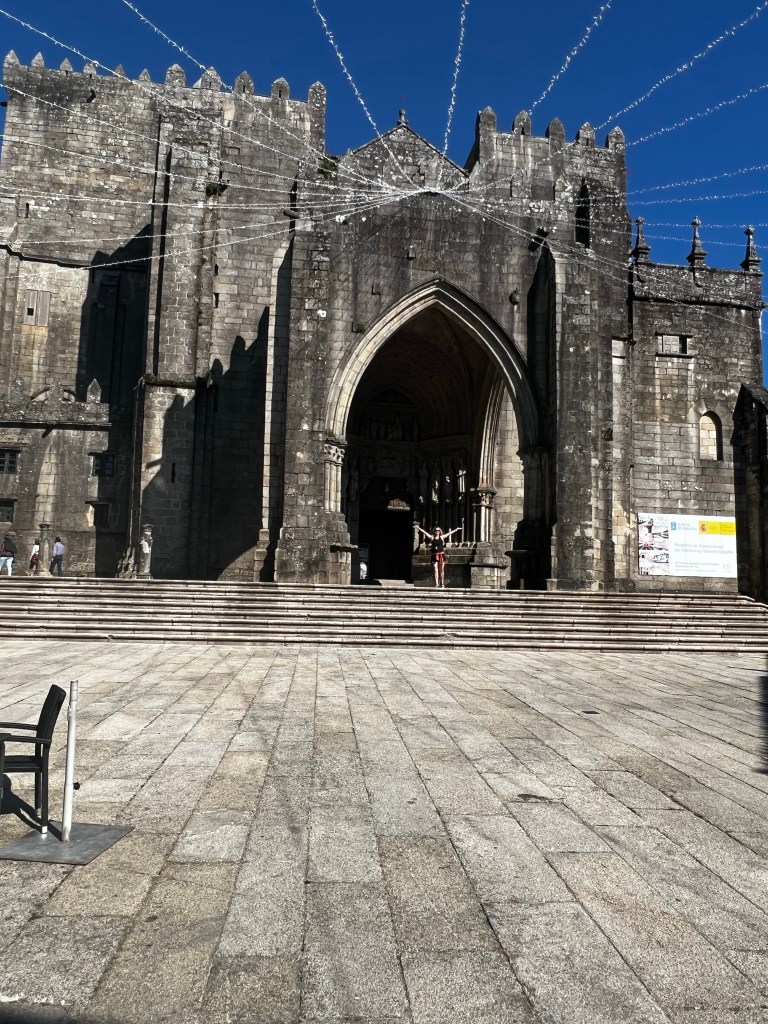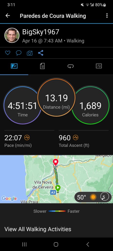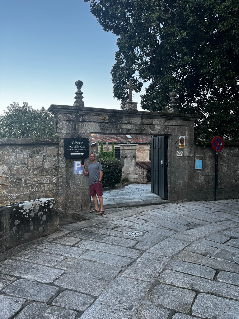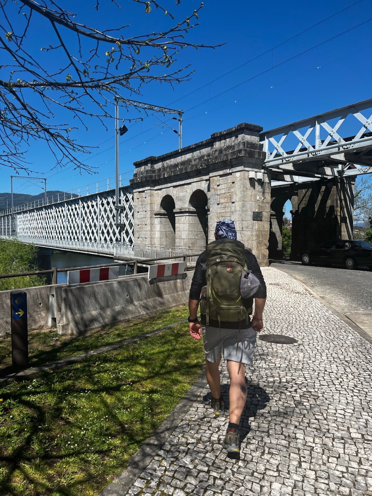 Today started out sketchy as the toilet in our alburque was broken. After working through that issue, we headed to the local cafe for a coffee, which was closed. Boo! We headed forward and found a cafe a few miles ahead. We had a nice coffee and breakfast. Niki picked up a few camino pins for her pack.. a few miles up, we met back up with our Dutch camino friends Flora. We walked together all day and finally reached the final Portuguese town of Valencia. Very neat city. We then crossed the half mile bridge and entered Spain. Goodbye Portugal. Spending the night in Tui tonight and trekking on our longest day of the trip tomorrow, which is 22.5 miles. AND Niki has agreed to stay on a proper hostel tomorrow. Should be an experience.